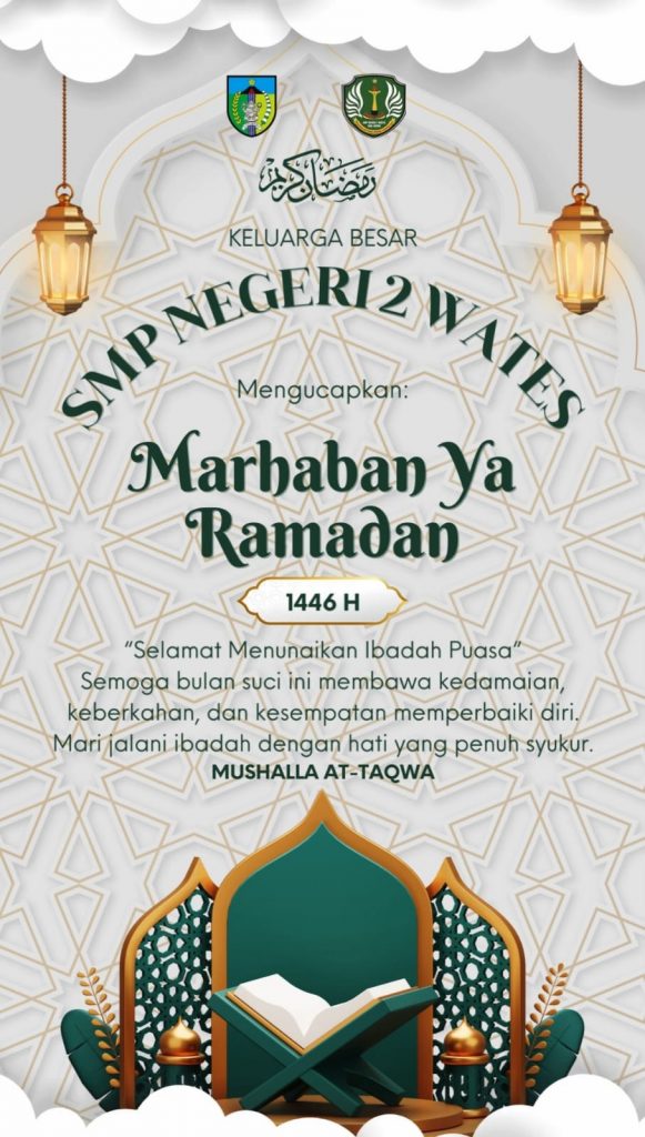 Keluarga besar SMPN 2 Wates Kabupaten Kediri mengucapkan selamat menjalankan ibadah puasa di Bulan Ramadan 1446 H.